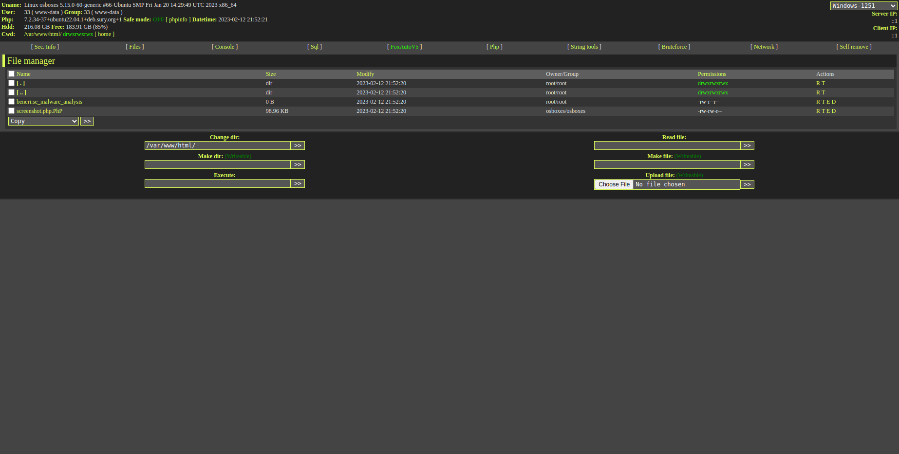 | shell.jpg.php | Environment, Execution, Files, Input, Title | 4f18439e8f87ecf3f814de3bb9e9b353 |